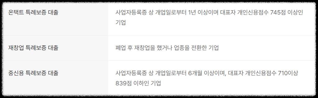 - 재창업 특례보증 대출 : 최대 1억 원
