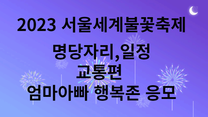 이상은 2023 서울세계불꽃축제 명당과 일정, 티켓예약 방법과 교통편,엄마아빠행복존 신청 등에 대해 알아보았습니다.