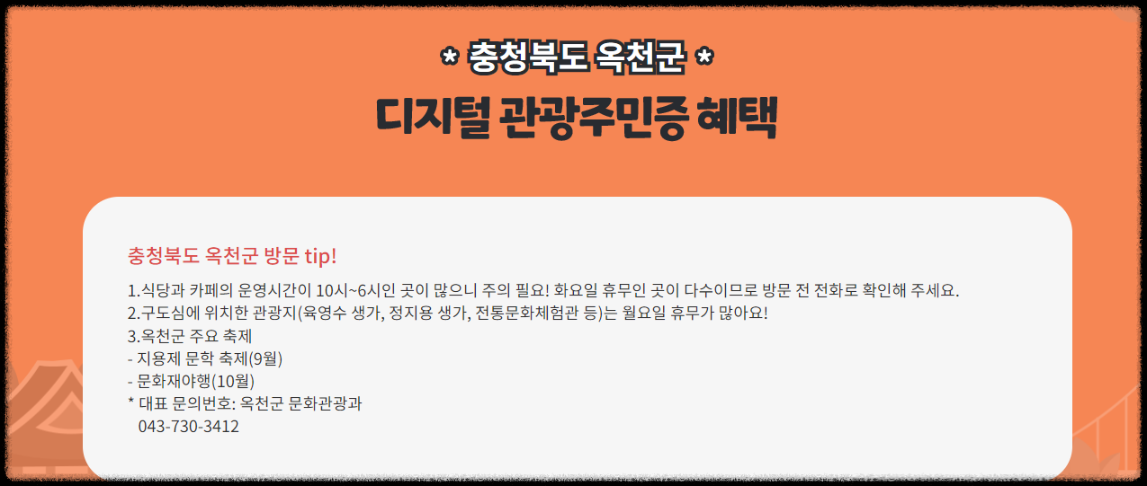 이상은 인구절벽지역의 관광 활성화를 돕고 관광객은 여러 혜택과 정보를 얻을 수 있는 디지털 관광주민증 발급방법과 사용처 및 혜택에 대해 알아보았습니다.