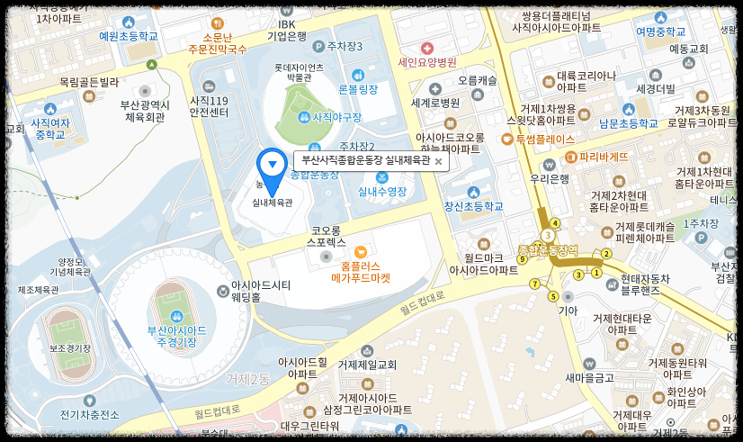 주소 : 부산시 ㅣ동래구 사직로 55-32 사직실내체육관