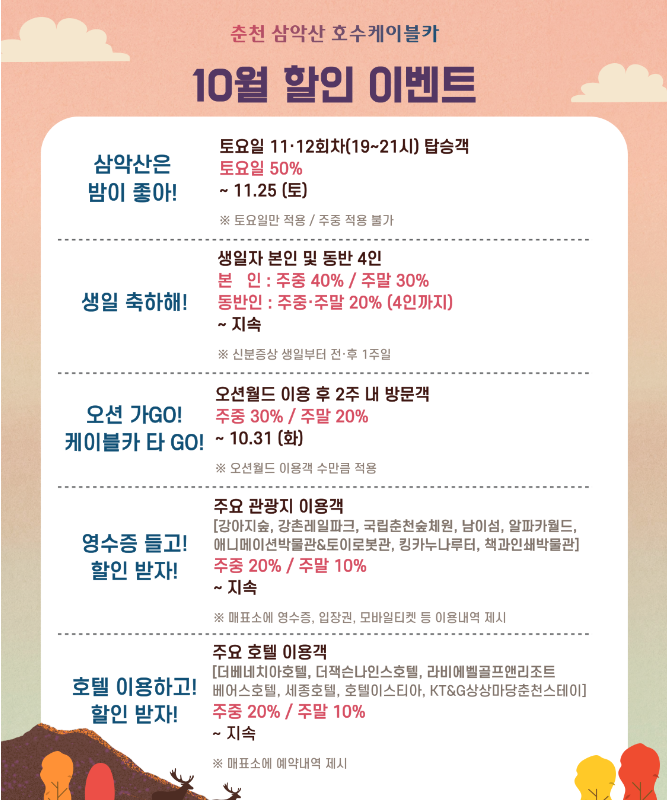 춘천 삼악산 호수 케이블카 할인 이벤트 보기