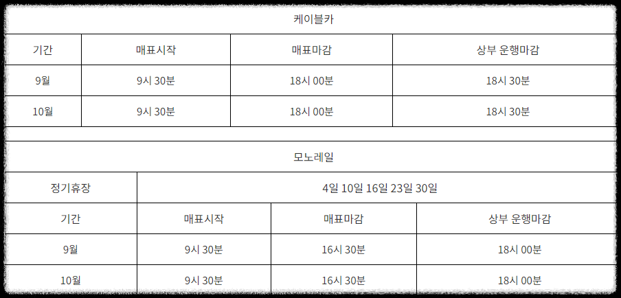 케이블카와 모노레일 예약방법, 요금 및 할인안내와 교통편까지 잘 보고 가시면 더욱 편리한 여행이 될 것입니다.
