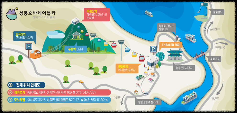 이상은 충북 제천의 명소로 떠오르고 있는 청풍호반 케이블카와 모노레일에 대해 알려드렸습니다. 지친 일상에서 벗어나 멋진 자연경관을 감상하면서 행복한 추억을 쌓아보시기 바랍니다.