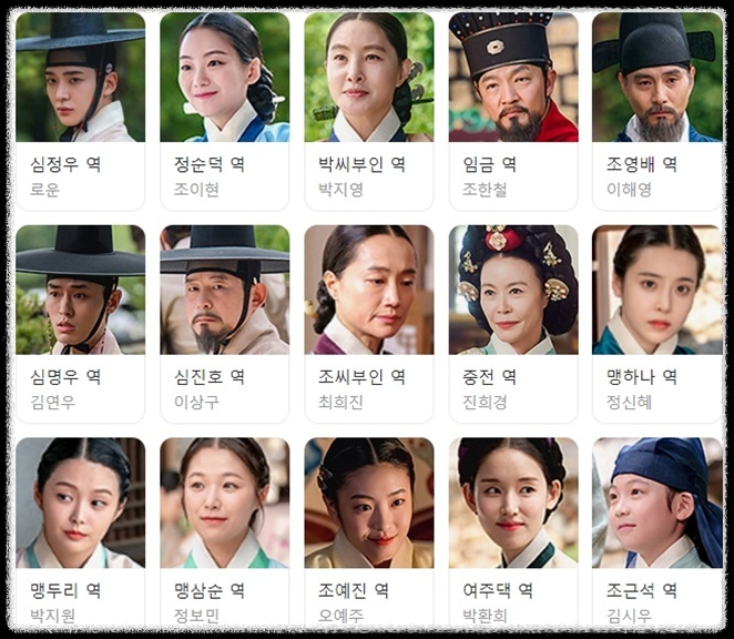 잘생기고 못하는 것 없이 출중한 정우는 공주의 눈에 띄어 부마가 되지만 혼례날 공주가 쓰러지는 바람에 홀아비가 되는 역할입니다. 카리스마와 능청스러움을 고루 갖춘 로운의 연기력이 과하지 않고 자연스럽습니다.