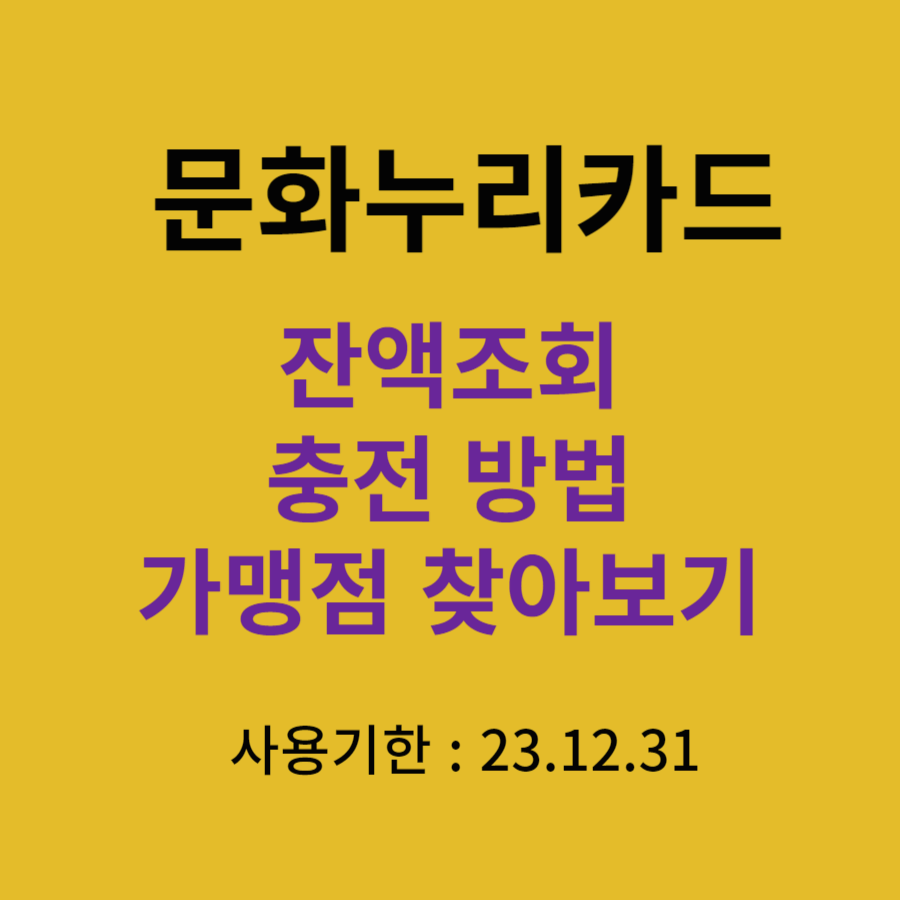 문화누리카드 사용기한이 얼마 남지 않았습니다. 잔액은 이월되지 않으니 확인해 보시고 얼른 사용하시기 바랍니다. 아래 글에서는 잔액조회, 충전방법과 카드를 사용할 수 있는 가맹점 찾기까지 안내해 드리니 지금 바로 확인해 보세요.