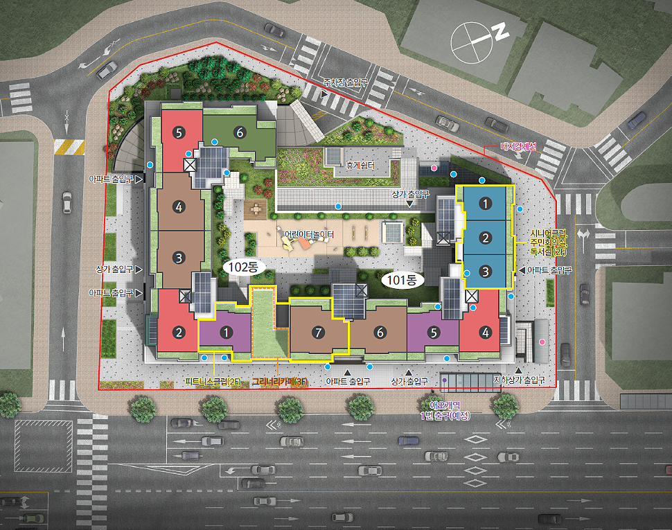 아래는 단지 배치도입니다. 101동과 102동 2개 동입니다.