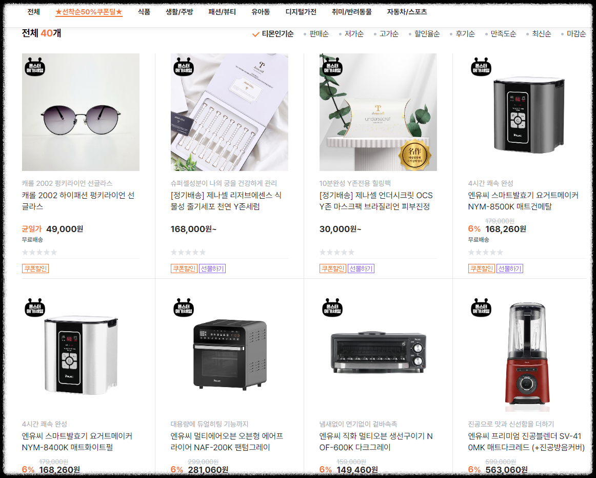 선착순으로 지급되는 50% 쿠폰딜도 놓치지 마세요.