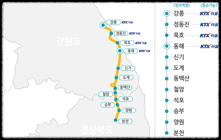 | 분천 ~ 강릉 | 15:42 | 18:22 |