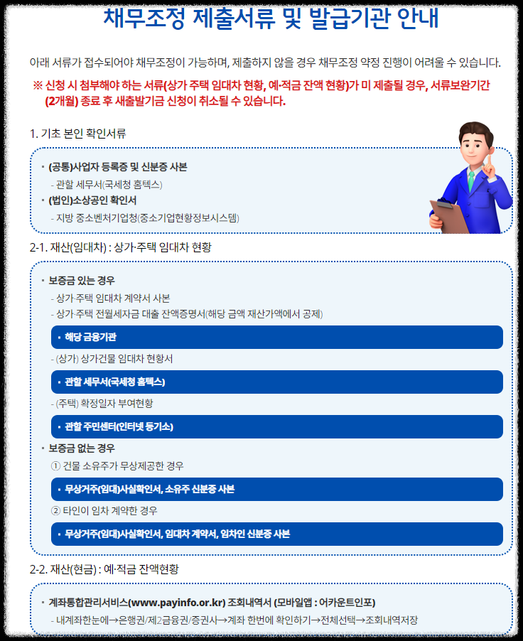 필요 서류가 모두 제출되어야 채무 조정을 받을 수 있습니다.