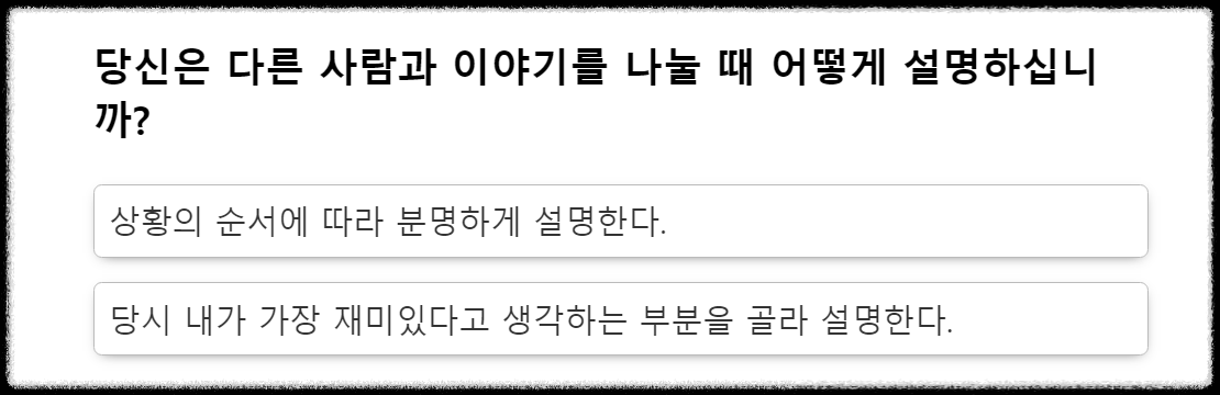 MBTI검사는 마이어스(Myers)와 브릭스(Briggs)가 고안한 성격유형검사입니다.