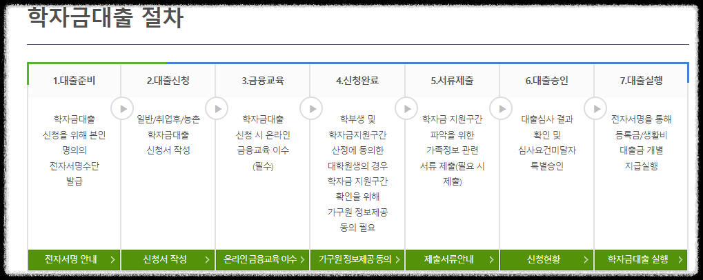 ※ 학기별로 신청해야 하며 심사를 거칩니다. 가구의 소득과 재정상태등에 따라 차등 적용되며 정기적으로 이자를 납부해야 합니다.