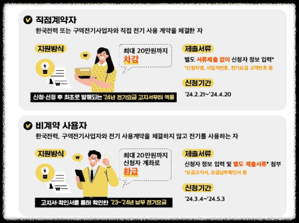 1. 직접 계약자 : 한전이나 구역 전기사업자와 직접 전기 사용 계약을 체결한 소상공인