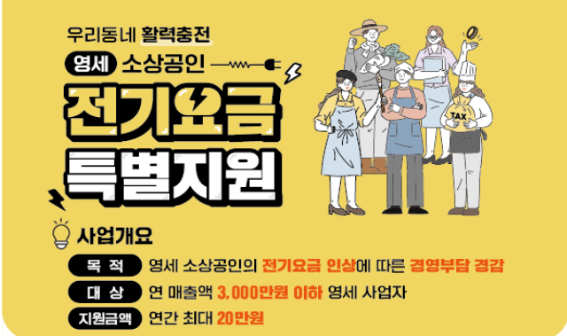 중소벤처기업부(장관 오영주)는 영세 소상공인을 대상으로 한 소상공인 전기요금 특별지원 사업을 15일 공고하고, 21일부터 신청자 유형에 따라 순차적으로 신청·접수를 개시한다고 밝혔다. 2020