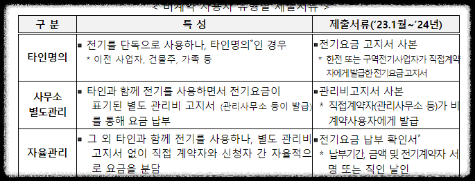 2. 비계약 사용자 : 한전,구역전기사업자와 전기 사용계약을 체결하지 않은 소상공인