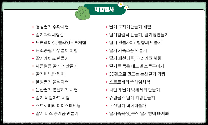 이상은 딸기 관련 다양한 체험과 재미있는 이벤트로 꾸며지게 될 논산딸기축제 일정에 대해 정리해 보았습니다. 3월 화사한 봄을 맞아 가족여행으로 강력히 추천드립니다.