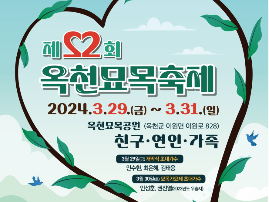 우리나라 최대 묘목 생산유통단지이면서, 충북 옥천의 대표 축제 중 하나인 옥천 묘목축제가 곧 열립니다. 해마다 축하공연등 다양한 이벤트와 묘목 나눔 행사를 진행하고 있습니다.