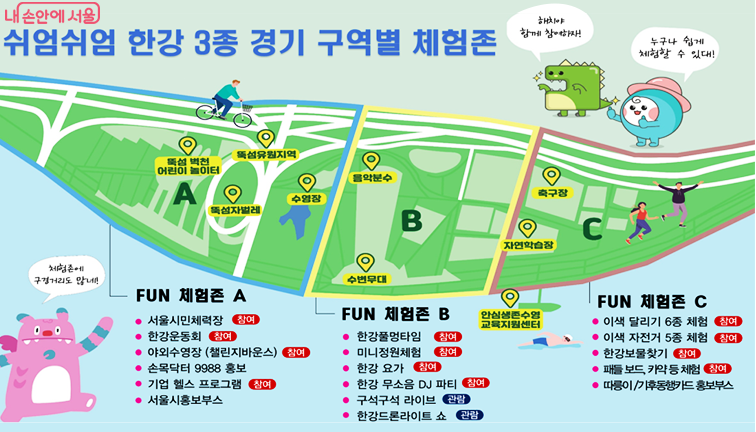 이 외에도 뚝섬 한강공원에 방문한 모든 시민들이 즐길 수 있는 체험프로그램이 많이 있습니다.