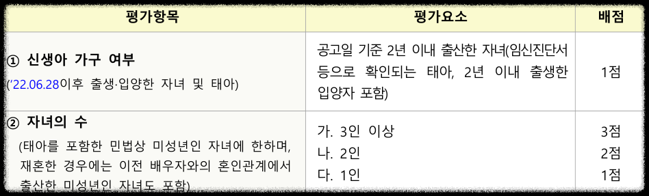 2년 이내에 출산한 자녀가 있거나 자녀가 3명인 경우 3점이 적용됩니다. 태아도 포함되며, 진단서를 준비하면 가능합니다.