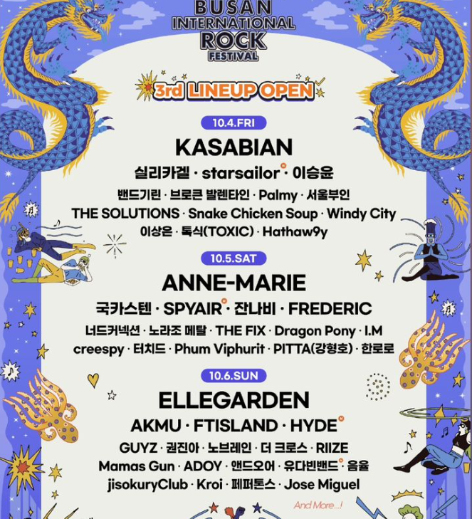 3차 라인업으로 합류한 아티스트는 총 4팀입니다. 일본 록 밴드 스파이에어, 유다빈밴드, 하이드, 스타세일러 등입니다.