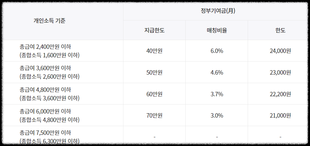 2. 중도 해지 : 3년 이상 유지한 후 중도해지하는 경우에 비과세를 적용하고 정부기여금도 매칭 비율의 60%로 지급할 예정입니다.
