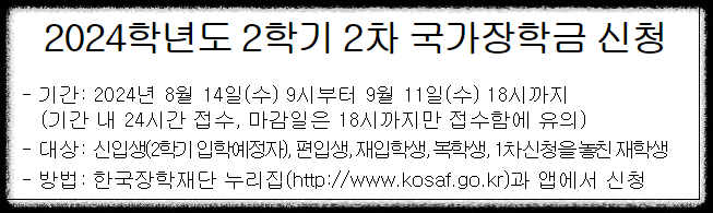 2024년 2학기 2차 국가장학금 신청기간, 방법, 지원금액등에 대해 자세히 안내해 드립니다.