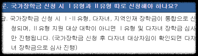 1유형 : 학생이 직접 신청하는 유형이며 소득분위에 따라 지원금액이 결정되니다. 소득 8구간 이하의 학생들이 대상이며, 성적 기준을 충족해야 합니다.