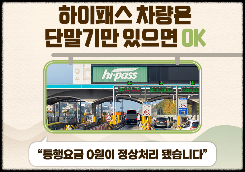 1. 하이패스 차량 : 평소처럼 하이패스 차로를 이용하면 됩니다.