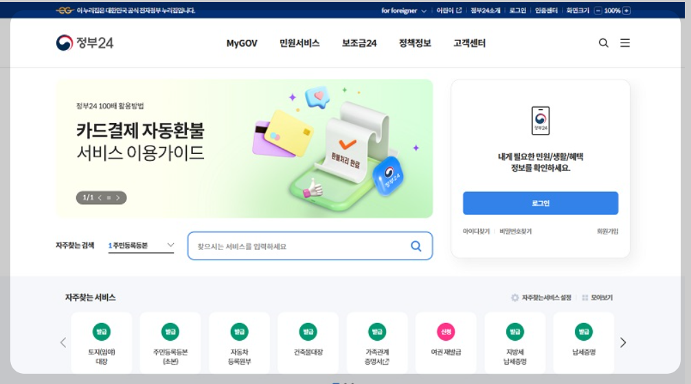 1. 정부 24 홈페이지 접속