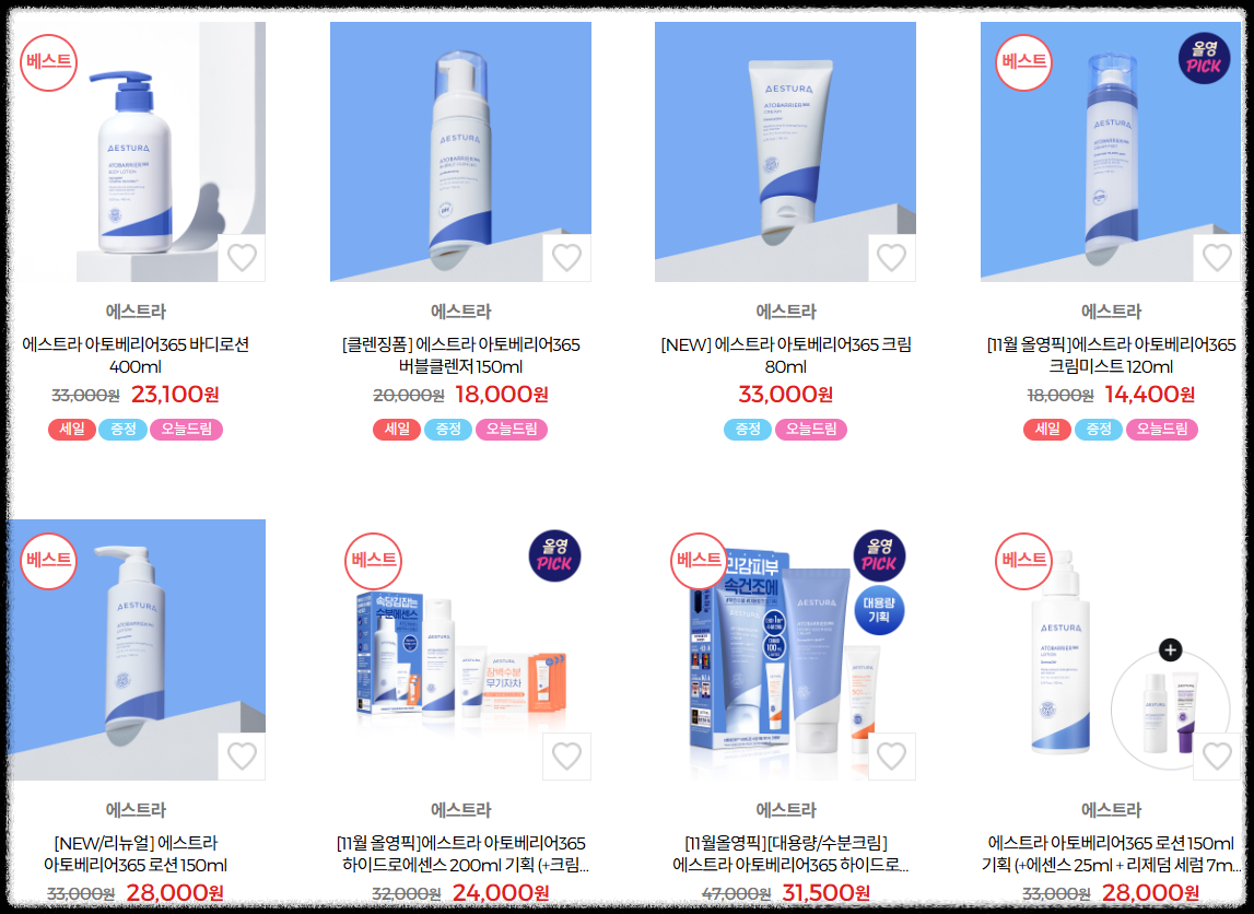 1. 에스트라 아토베리어 365 크림: 민감한 피부를 가진 분들에게 강력 추천하는 보습 크림입니다.
