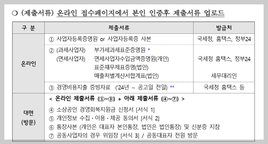 1. 온라인: 본인 명의 휴대폰 인증 후 온라인 신청 페이지에서 신청서 작성 및 필요 서류 업로드