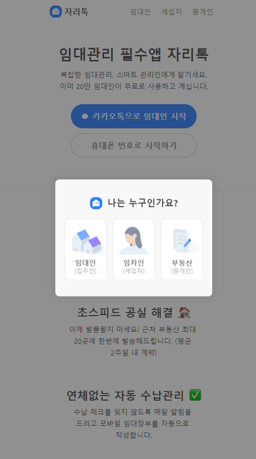 자리톡은 임대인도 같이 사용할 수 있는 관리 시스템인데요.