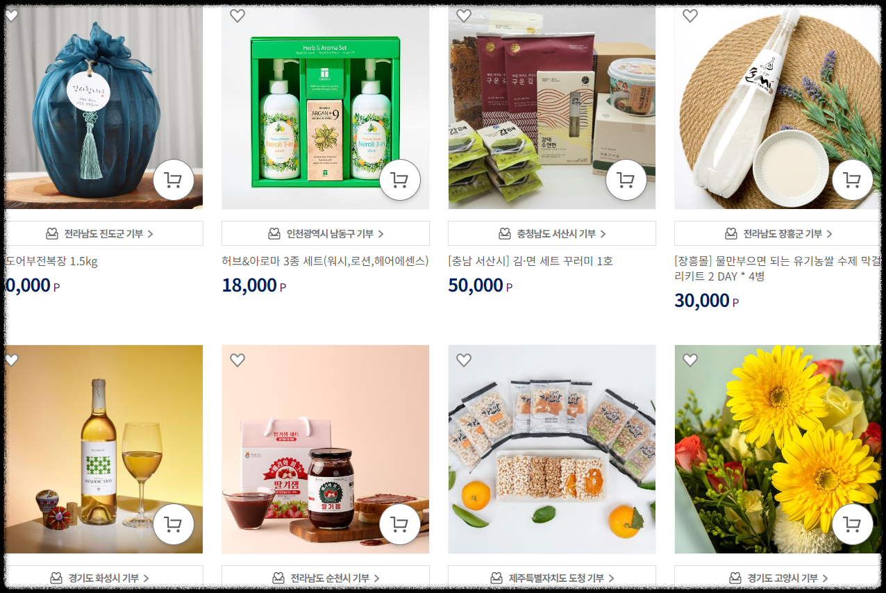 아래를 클릭하시면 쉽게 기부도 하고 답례품도 고를 수 있습니다.